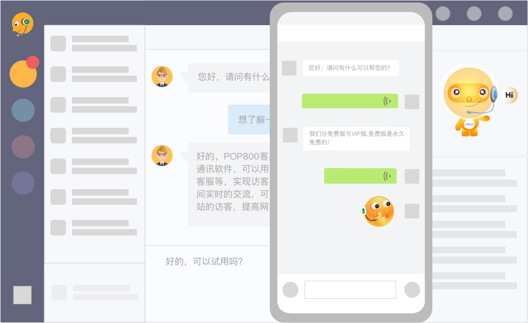 POP800移動端最新版已上線,讓你隨時隨地溝通無阻。手機版更加便利,即時對話可與電腦端同時接收消息。座席管理、數據分析等功能讓您更加便利快捷。